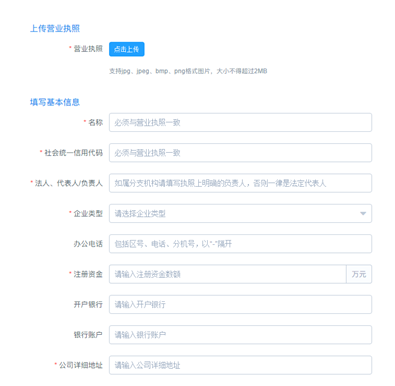5、按要求填寫完認證資料并提交,魯班長工作人員會在1個工作日內進行企業審核。如需緊急處理請聯系魯班長客服人員。