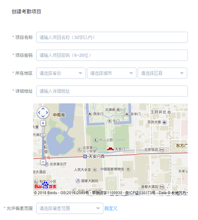 7、在創建考勤項目頁面,按要求填寫信息并提交
