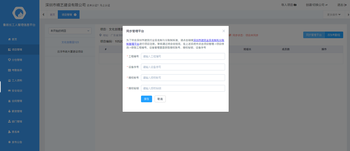5、同步對接前請確認在【魯班長平臺】是否已通過企業認證。