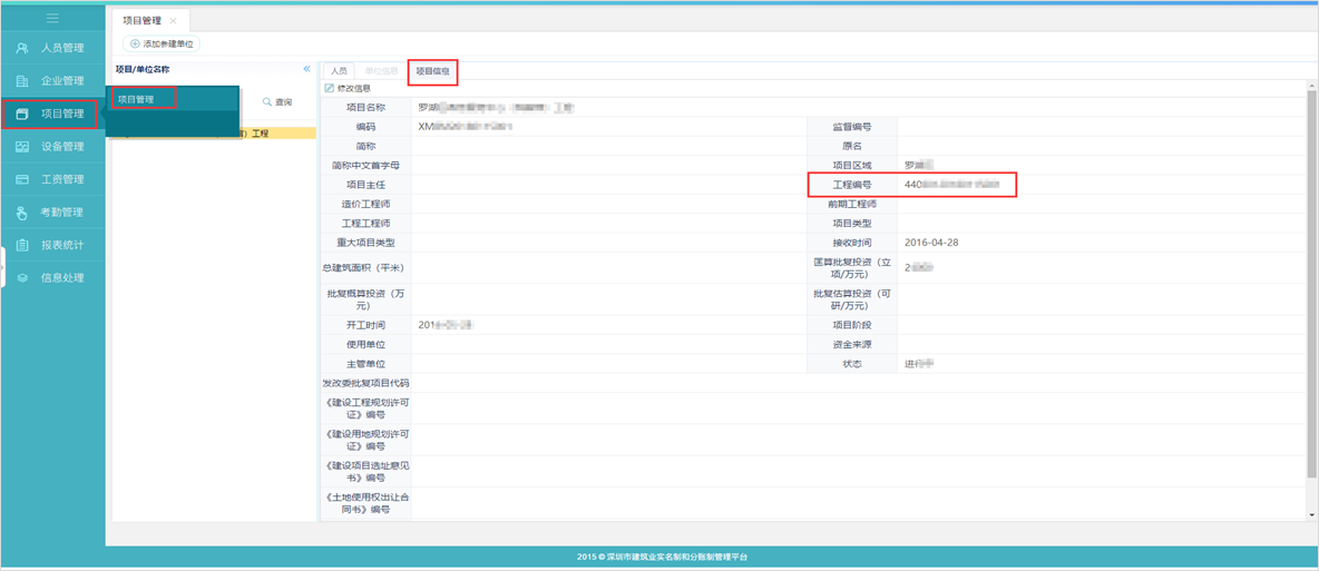4、工程編號位于:兩制平臺>項目管理>項目信息