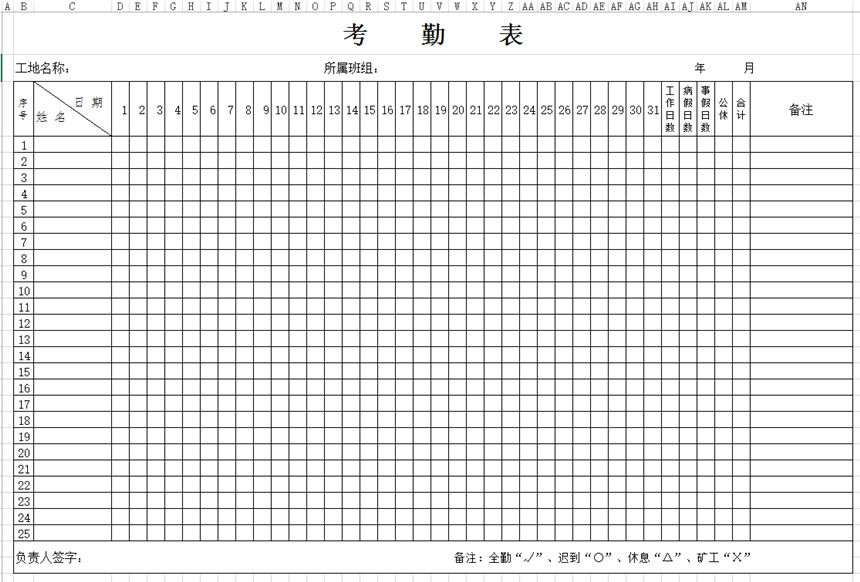 考勤表名稱:建筑工程工地考勤表